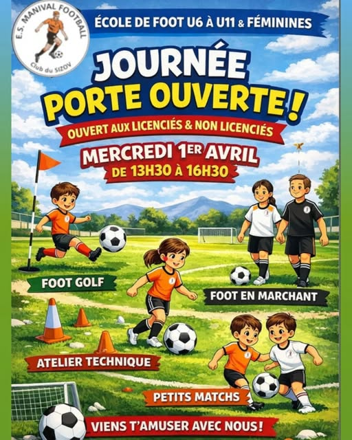 Vacances de la Toussaint – Saison 25/26 L’ES Manival organise son stage de football ouvert à toutes et tous (licenciés ou non) ! Du lundi 20 au vendredi 24 octobre 2025 (hors mercredi 22...