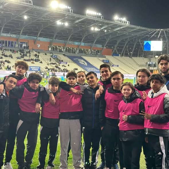 Invités par le GF38, les joueurs ont eu la chance d’être ramasseurs de balle lors du match. Une rencontre un peu calme sur le terrain… mais une expérience incroyable pour le groupe, au plus près des joueurs pros et de l’ambiance d’un stade de L2.